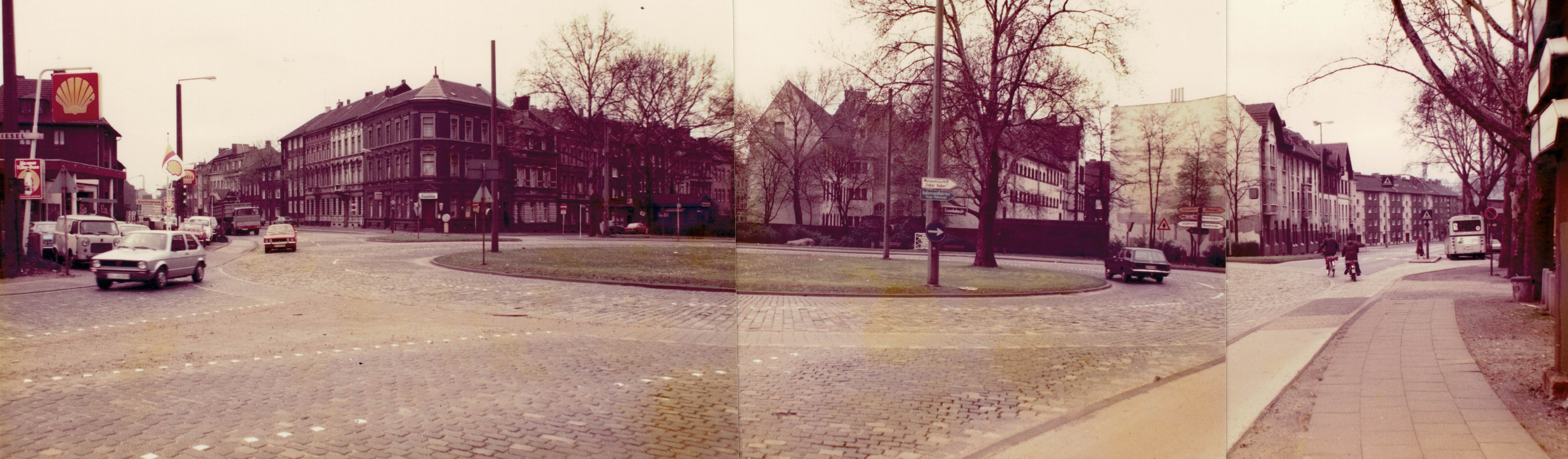 1887 wurden die Fluchtlinien der Phoenixstraße endgültig festgestellt. Die neue Linienführung, nicht mehr im engen Bogen am Friedhof entlang, sondern geradeaus durchgelegt, konnte erst 1896 realisiert werden. Zuvor musste noch die sogenannte Winkelskuhle, die sich im etwa heutigen Kreisverkehr befand, aufgefüllt werden. Die Winkelskuhle war ein Rest der ehemaligen Woye oder Wade, einem verlandeten Flussarm. Da sich die Phoenixstraße teilweise auf Meidericher Gemeindegebiet befand und sich die Meidericher Zeit ließen, ihren Teil der Winkelskuhle auf das gleiche Niveau wie Ruhrort zu bringen, verzögerte sich der Ausbau der Straße.